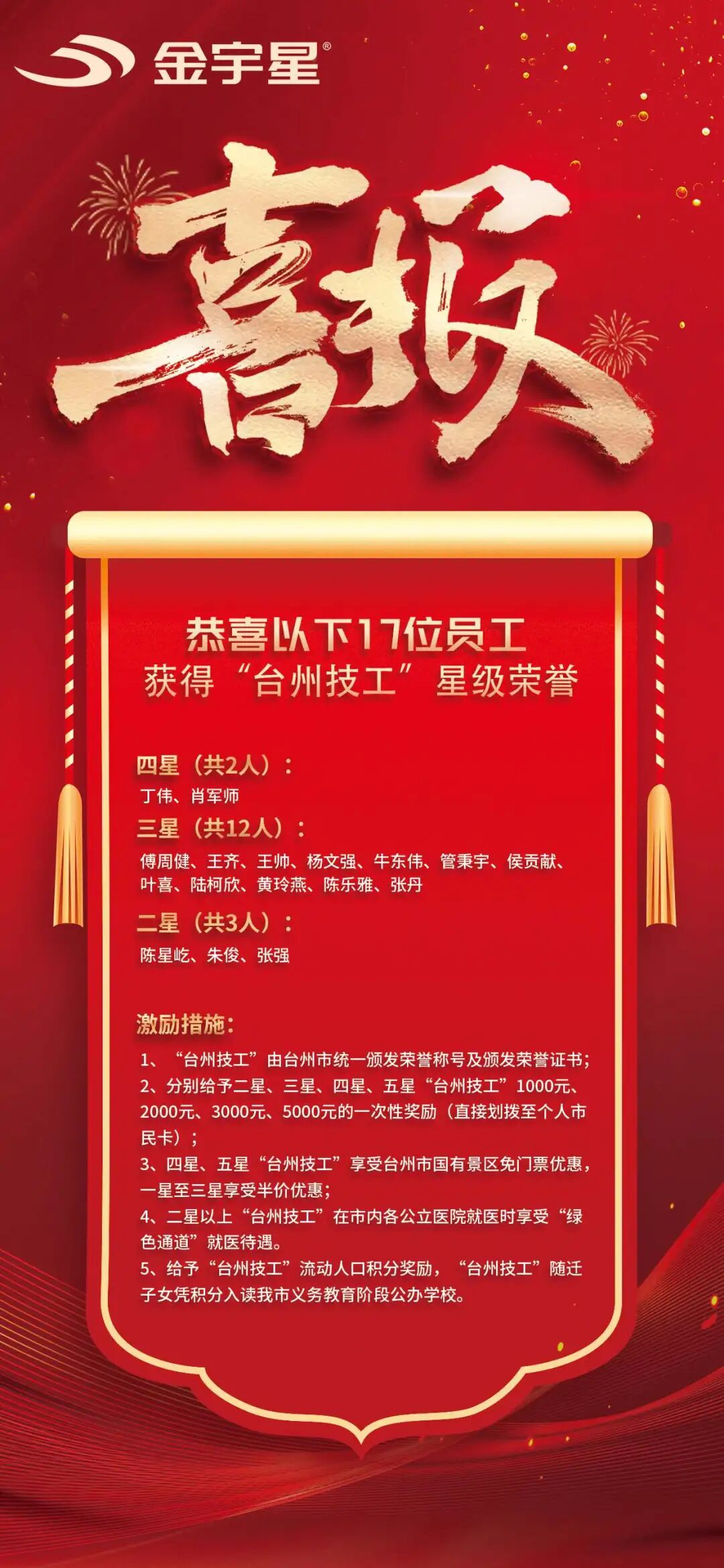 喜訊!我司多位員工榮獲臺州市星級技工榮譽
